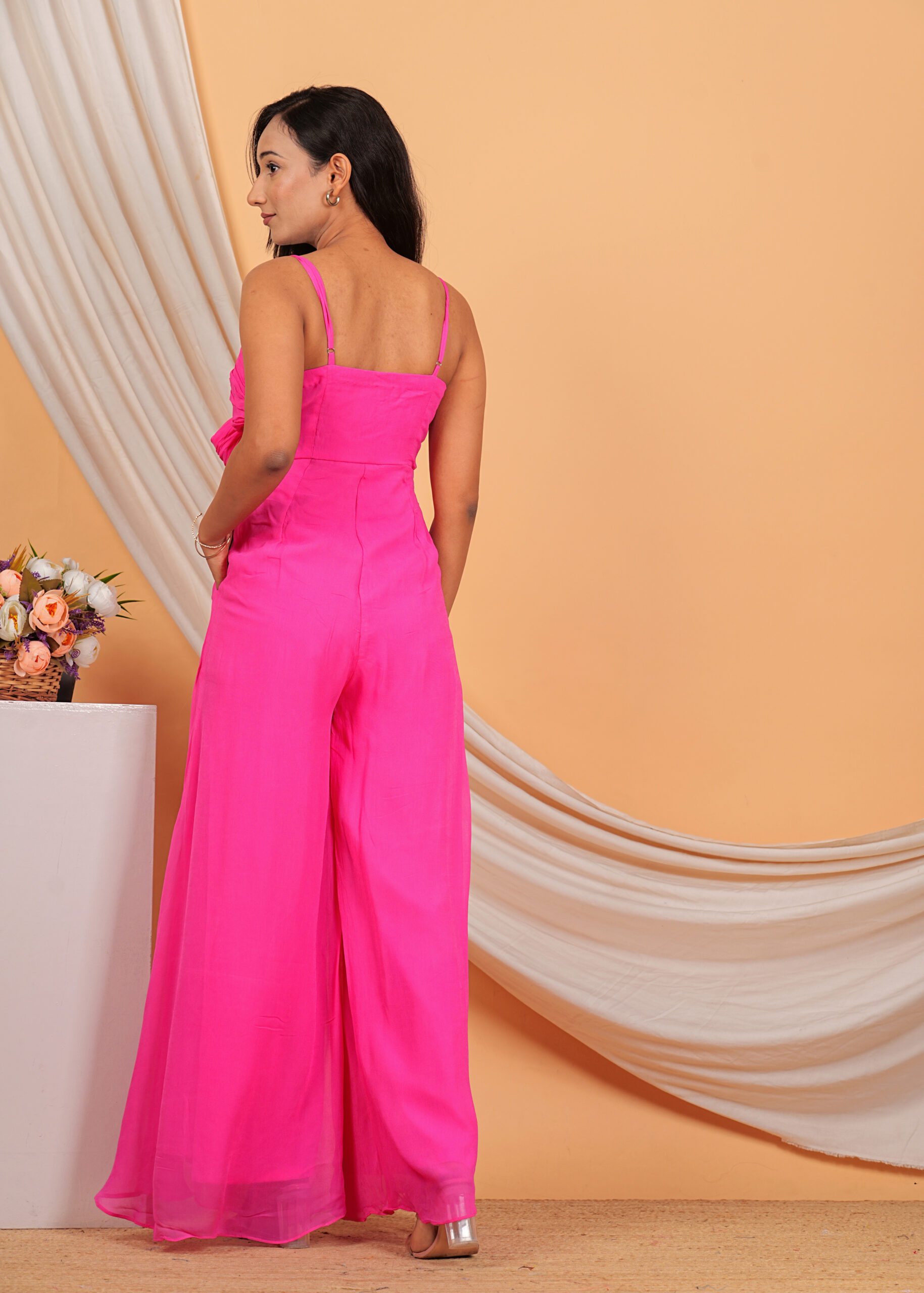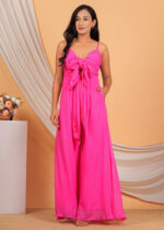 wanna reach that party right after your office hours ? We’ve got you covered. Our Celestial Pink jumpsuit, love Georgette , this Celestial Pink jumpsuit