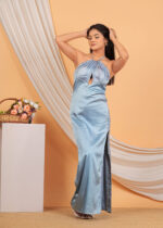This sky maxi is perfect for a day-time engagement party or even a surreal beachside date. Looks great by itself or with minimal gold jewels
